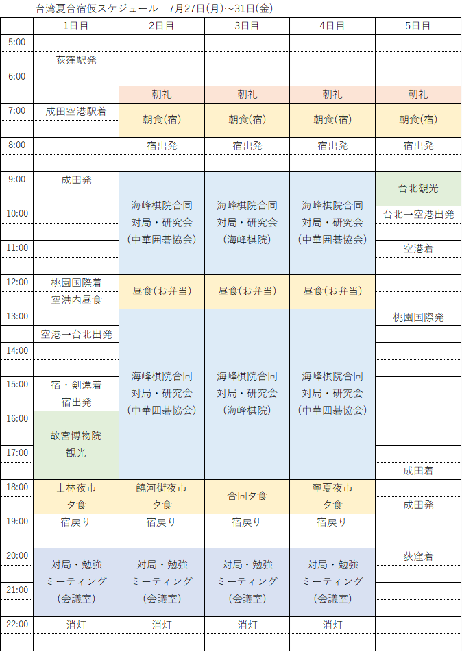このたび、台湾夏囲碁合宿の開催が決定しました。